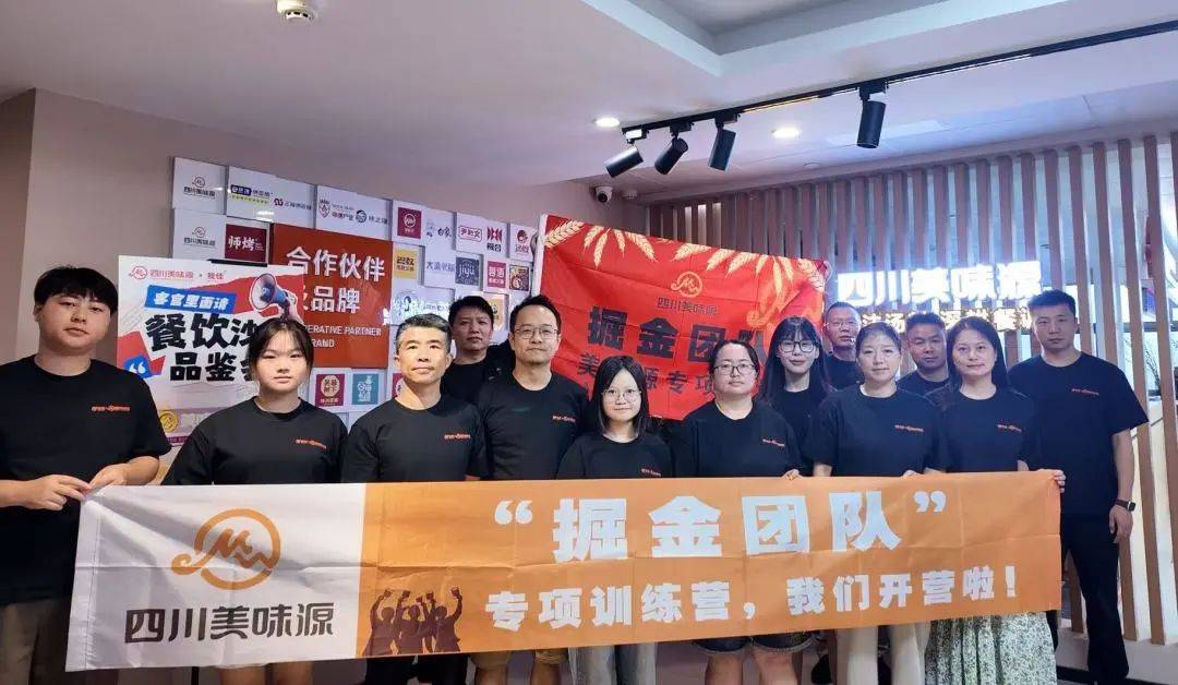开营当日,四川美味源全体营销人员身着统一服装,活动现场以 “掘金团队专项训练营” 主题横幅为视觉核心,搭配激励标语,营造出斗志昂扬的备战氛围。