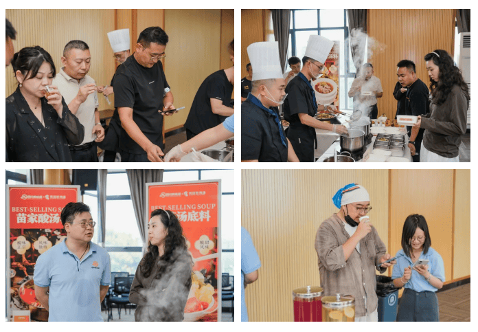 访厂活动的高潮,当属直击采购核心判断标准的产品品鉴环节。四川美味源围绕核心产品——我佳鸡汤,设置四大品鉴专区,让餐饮调味品买家从味觉维度深度验证产品竞争力,毕竟下游客户认可的口味,才是采购的硬通货。