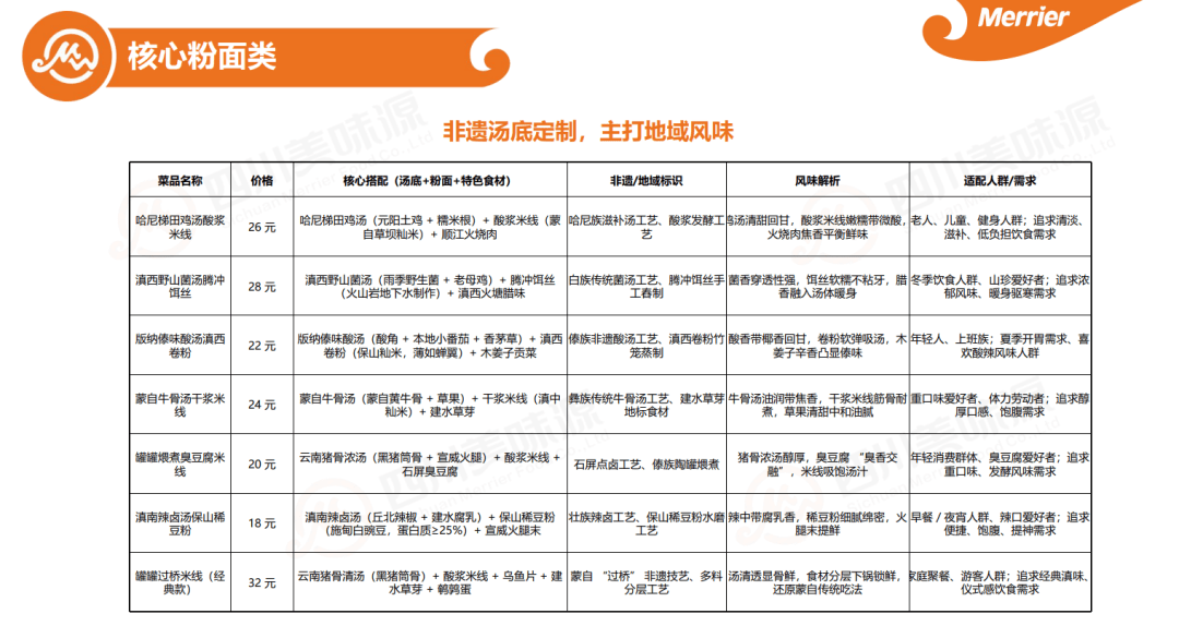 食材溯源体系则为风味提供了品质支撑,罐罐米线聚焦滇南、滇西、滇中三大区域,精选元阳梯田土鸡、滇西野生菌、宣威发酵火腿等12种地标食材;门店明档区展示食材与产地视频,让新鲜可视化,契合65%消费者将口味稳定性列为复购首要因素的需求。