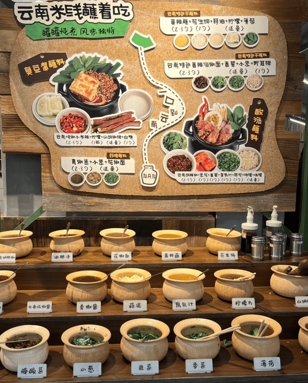 汤底与粉面的精准适配更构建了风味壁垒。打造“鲜、浓、酸、辣、清”5味汤底体系,7种汤底与5类粉面基底形成20余种组合,搭配20-30种蘸料的DIY体验,既保留一锅百味特色,又满足个性化需求,提供15种以上蘸料的门店复购率高出基础蘸料门店25%。