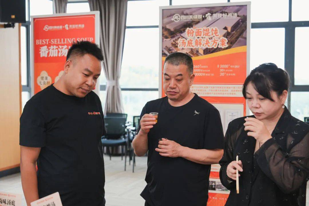 访厂活动的高潮,当属直击采购核心判断标准的产品品鉴环节。四川美味源围绕核心产品——我佳鸡汤,设置四大品鉴专区,让餐饮调味品买家从味觉维度深度验证产品竞争力,毕竟下游客户认可的口味,才是采购的硬通货。