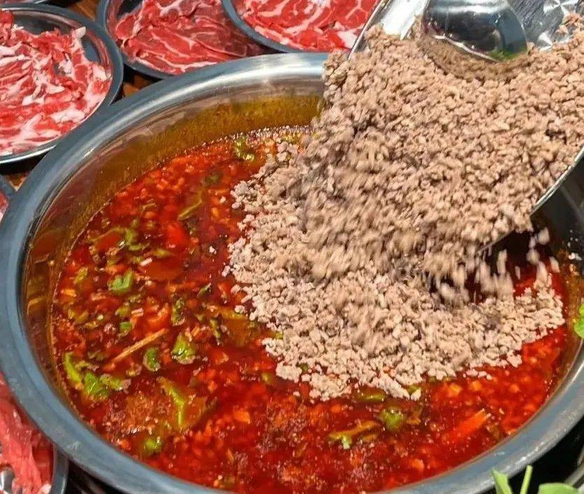 鲜美的牛肉搭配上更是一绝。毛辣果的酸、木姜子的清香和辣椒的辣都在锅中完美融合,汤汁紧紧包裹每一粒牛肉,涮菜也十分挂味。用这道“黔”味十足的美味嗨爆食客味蕾!